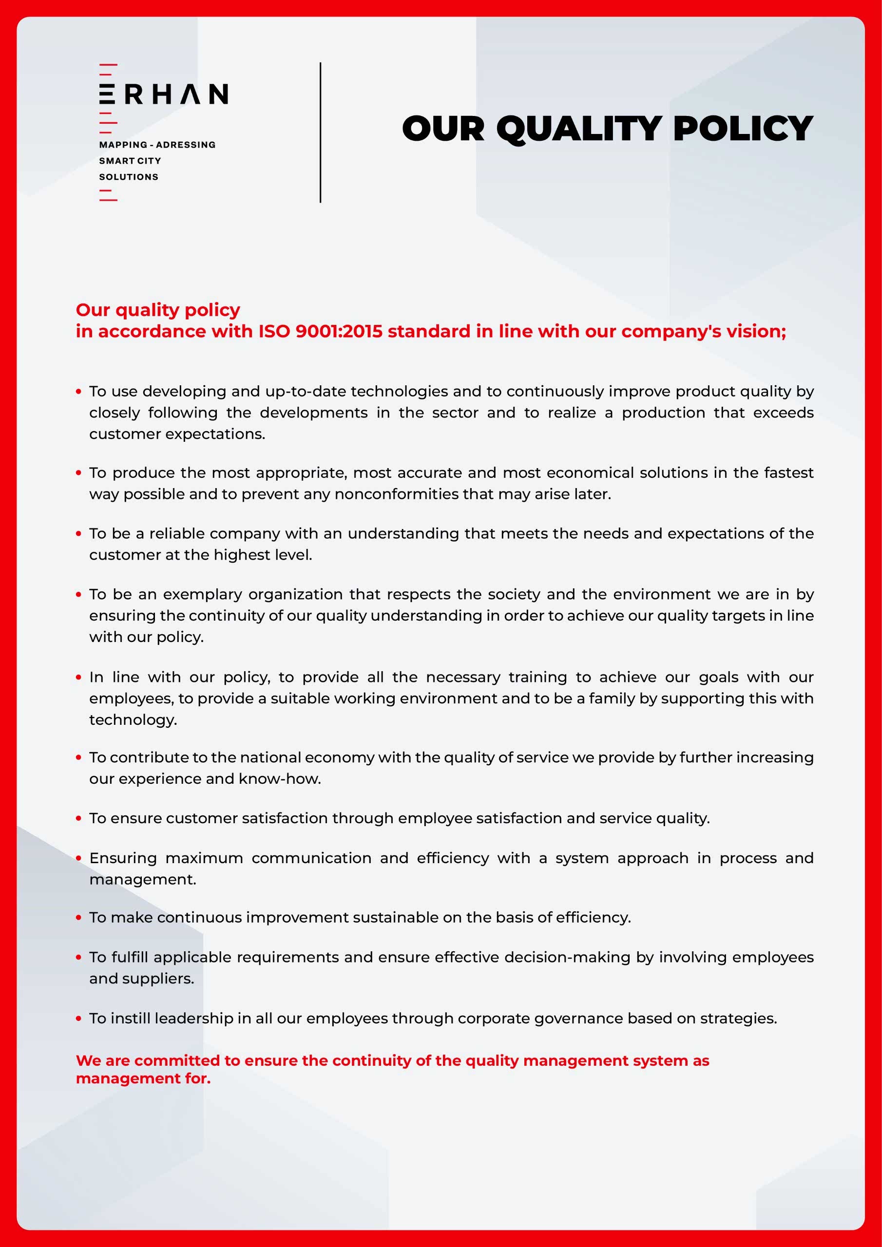 OUR QUALITY POLICY
